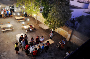 We experiment building sites as places of knowledge exchange and conviviality. In a first step we conceive places of production and furnish the tools and methods to produce a construction site situation that understands and respects the local and concrete needs and has the capacity to adapt throughout the process to unexpected turns. We live in situ and put in place the infrastructures that assure the high quality of the space, the food, the exchange and everything that is needed to produce something worthwhile. Construction is the first step of inhabitation. Or, cohabitation. The construction site is a strategic position from which we can initially observe the local reality and initiate a situation of encounter to tame and be tamed by the local communities and later hopefully be incorporated. Often, our spatial interventions become a support structure, where different projects and initiatives can be developed. We want to create a visible space, qualified to stimulate a new sociality, but at the same time, we want to keep its potential open and not predefine its outcome. Members of the collective offer a unique social capital to the local economy. Apart from creative energy and ideas, the collective is gifted with practical hands-on skills and tools that can be very useful to the community such as woodworking, printing press, graphic design, mediation, metal-working and baking.