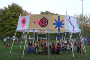How do you access public space? In our projects this is a question that comes back often. And how does the public access our space? We conquer a space in order to then put it on the table for negotiation. Often the spaces we act on are changing their status with our intervention: from derelicted to lively, from closed to open, from forgotten to new attraction, we wonder what is the best way to communicate to visitors the transformation of a place, which did not use to welcome the public. At the same time, when you stress a little what public use can possibly mean, how can you find a balance between protecting and opening up a space? We want to tickle people’s imagination and show that public use can be more engaging, and even include production. That public use can be more versatile, and sometimes spark long-term devotion. That public space can be more intimate, and even get a personal touch. A public space is not simply a decorative park, where you are not allowed to leave any trace or change anything, but a place where production of goods and ideas can be facilitated and were democracy should be practised.
