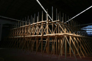We experiment building sites as places of knowledge exchange and conviviality. In a first step we conceive places of production and furnish the tools and methods to produce a construction site situation that understands and respects the local and concrete needs and has the capacity to adapt throughout the process to unexpected turns. We live in situ and put in place the infrastructures that assure the high quality of the space, the food, the exchange and everything that is needed to produce something worthwhile. Construction is the first step of inhabitation. Or, cohabitation. The construction site is a strategic position from which we can initially observe the local reality and initiate a situation of encounter to tame and be tamed by the local communities and later hopefully be incorporated. Often, our spatial interventions become a support structure, where different projects and initiatives can be developed. We want to create a visible space, qualified to stimulate a new sociality, but at the same time, we want to keep its potential open and not predefine its outcome. Members of the collective offer a unique social capital to the local economy. Apart from creative energy and ideas, the collective is gifted with practical hands-on skills and tools that can be very useful to the community such as woodworking, printing press, graphic design, mediation, metal-working and baking.