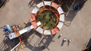 Literally meaning ‘gathering place’, the agora is placed in the heart of the community. When sensing a genuine need for debate and discussion in a particular place, the agora becomes a catalyst for a dense situation of exchange, be it lore, passion or conflict. In our current individualistic society, there is need for the promotion and reconfiguration of public life and this can be achieved in tangible places such as the agora. A crucial space for the practice of democracy as such, it is usually constructed in a circular shape, which demonstrates a non-hierarchical way of organizing space. Architecture, as the practice of organizing space, can influence the organization of society. Through its temporality it is both hunting and awakening the desire to communicate on a playing field level. The gesture of starting a dialogue in an ephemeral space can become a ritual that can afterwards turn into a habit, settling and reinforcing the physical agora by its presence or moving elsewhere, where it can be practised more permanently.