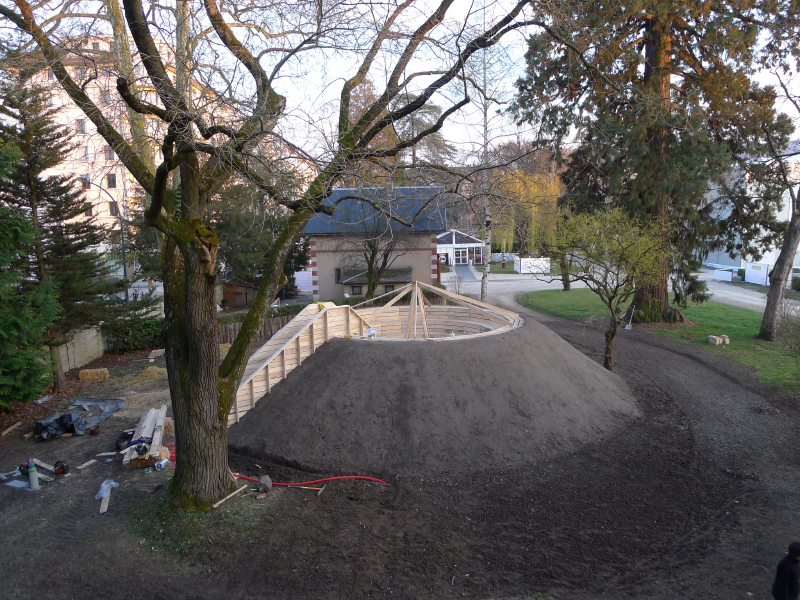 Jardins fabriques is a design-build project with students from École Supérieure d’Art de l’Agglomération d’Annecy, art school of Annecy, France. The project is a partnership between the city hall, the National Theater Scene Bonlieu of Annecy and the art school. Coordinated by the teaching staff of the art school, it is a pedagogical project in the design space department under the guidance of Alexander Römer and Emmanuel Louisgrand.
